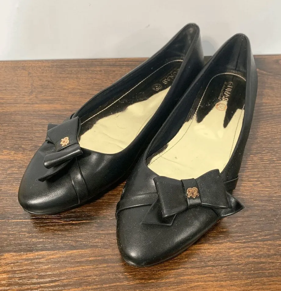 Gunas No Animals Harmed Leather Slip On Almond Toe Ballet Flat Black Size 10 Brand: Gunas Department: Women's Size: 10 Color: Black Type: Flat Style: Ballet Toe Shape: Almond Toe Closure: Slip On Pattern: Solid Condition: Pre-Owned, left shoe 2 flaws - right side of shoe.