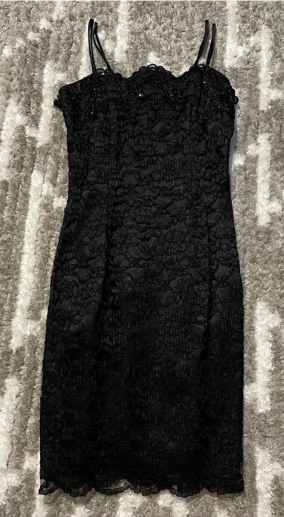 On sale is a vintage VTG Gunne Sax Jessica McClintock Black Lace Mini Dress. It is a vintage 7/8 and... Show more