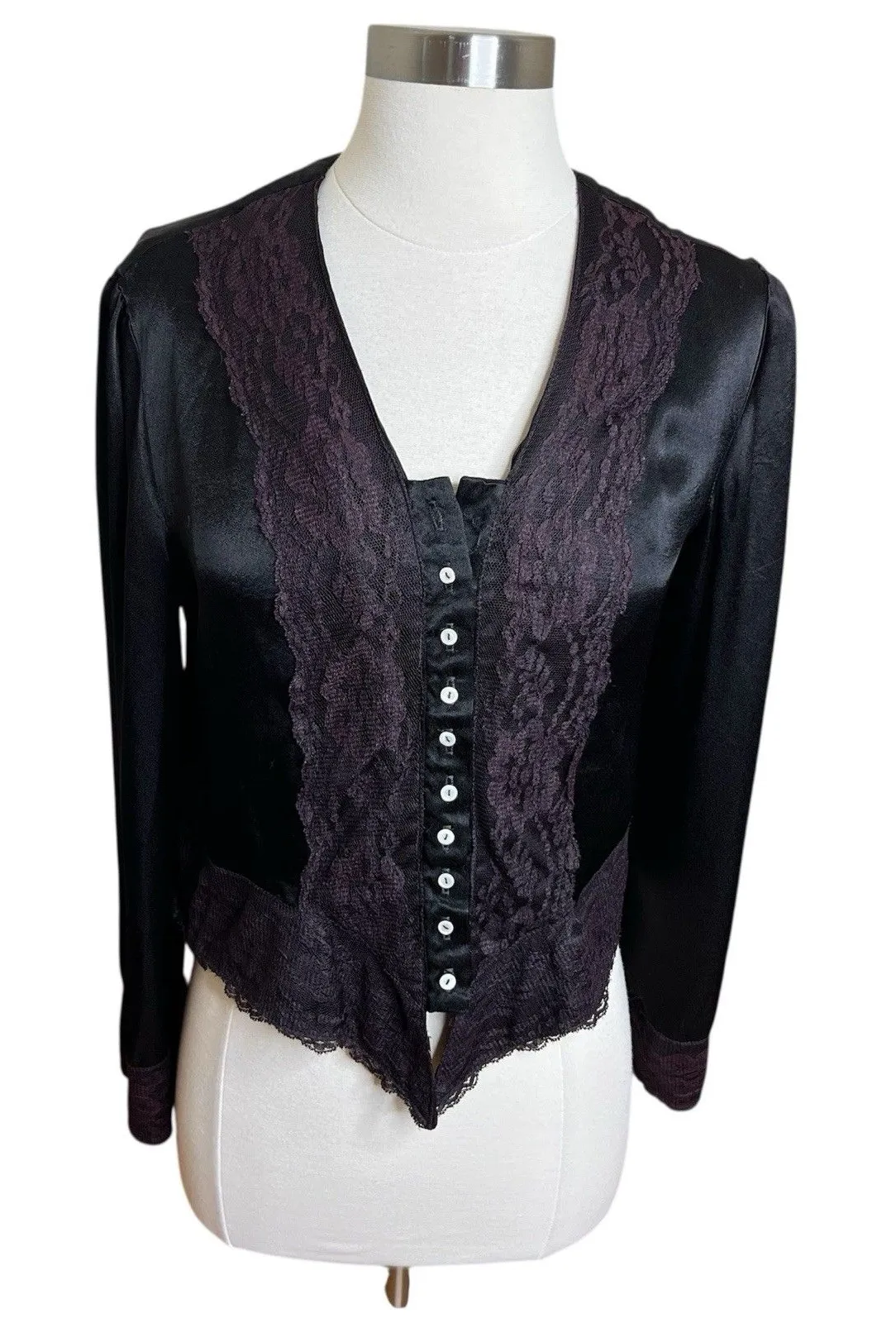 Vintage Jessicas Gunnies Blouse Size 11 Black Purple Satin Lace Button Down Goth Size M - $60 - From Laura