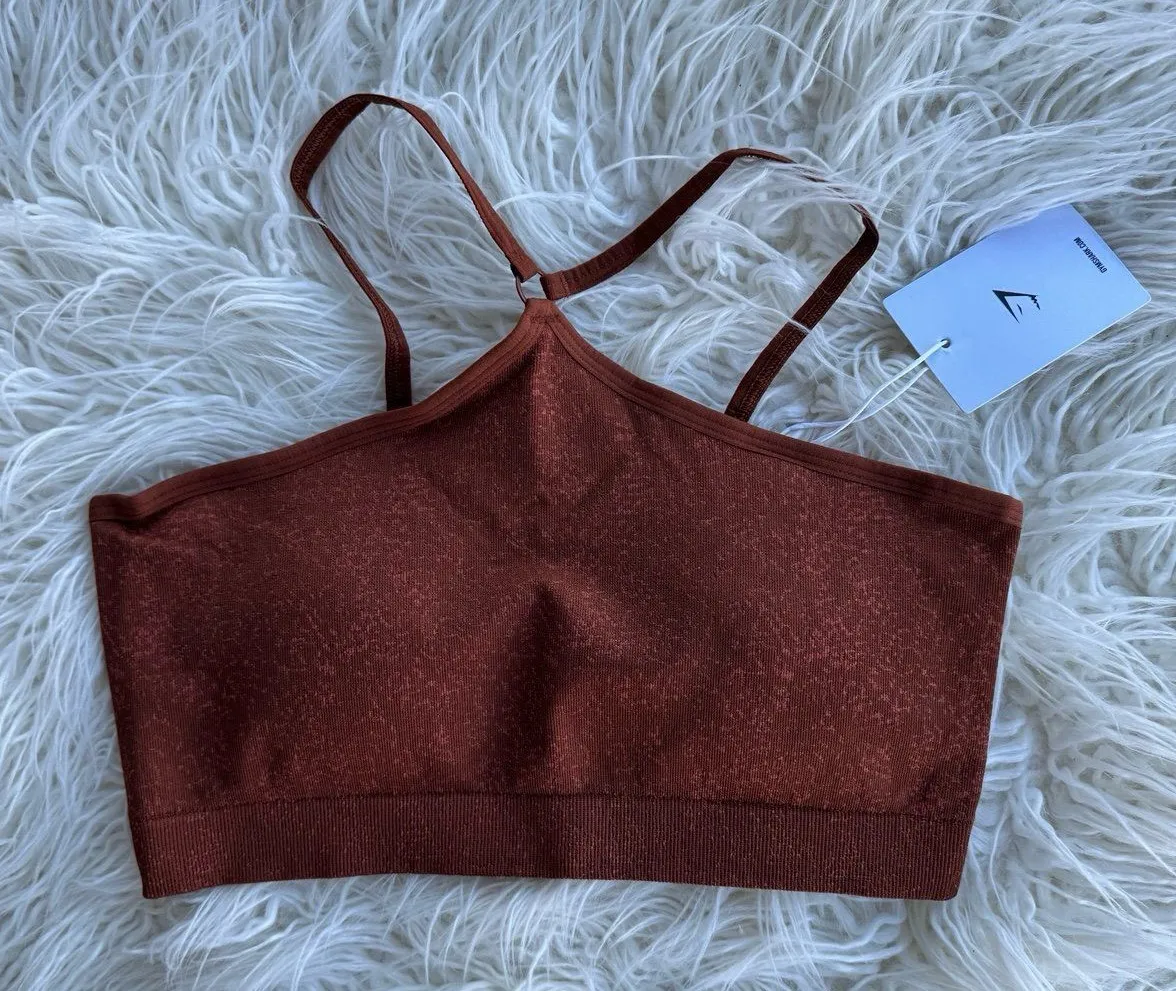 Gymshark Adapt Fleck Seamless Halter Neck Sports Bra Copper Brown/Terracotta Orange Size Large Whe... Show more