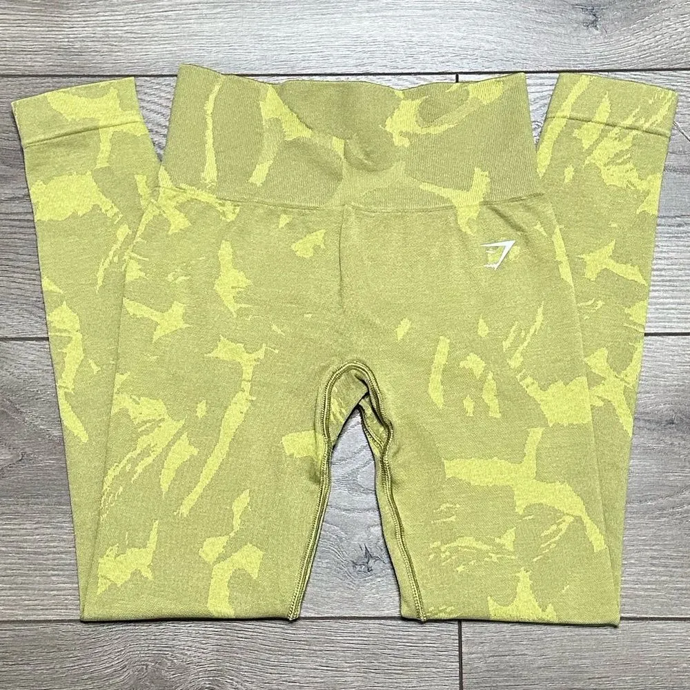 Gymshark High Rise Seamless Scrunch Butt Green Yellow Camo Leggings Size XS. Excellent condition! Wi... Show more