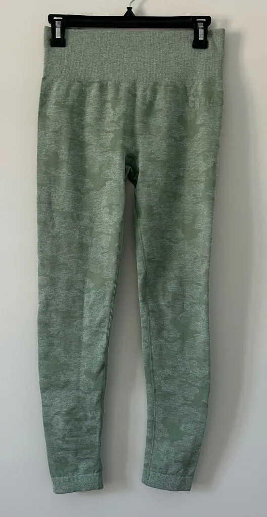 Gymshark Green Camo Seamless Scrunch High Rise 25in Leggings Color Sage Green Size Medium Inseam... Show more