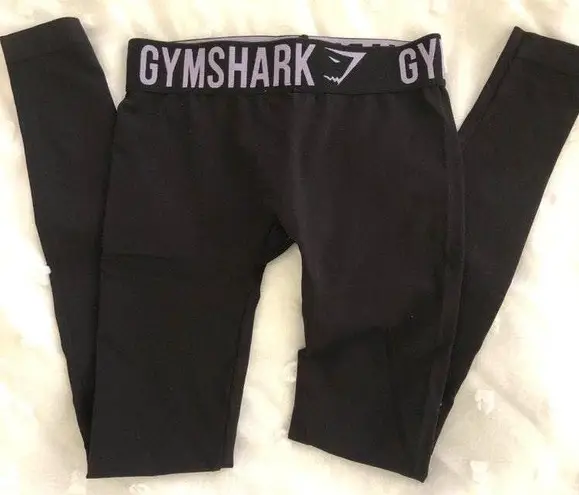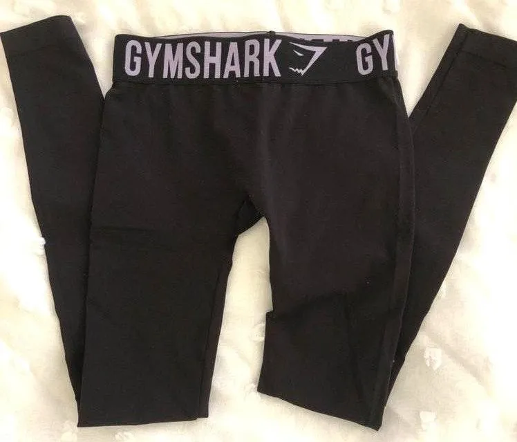 Never worn black Gymshark leggings with purple logo on waist band