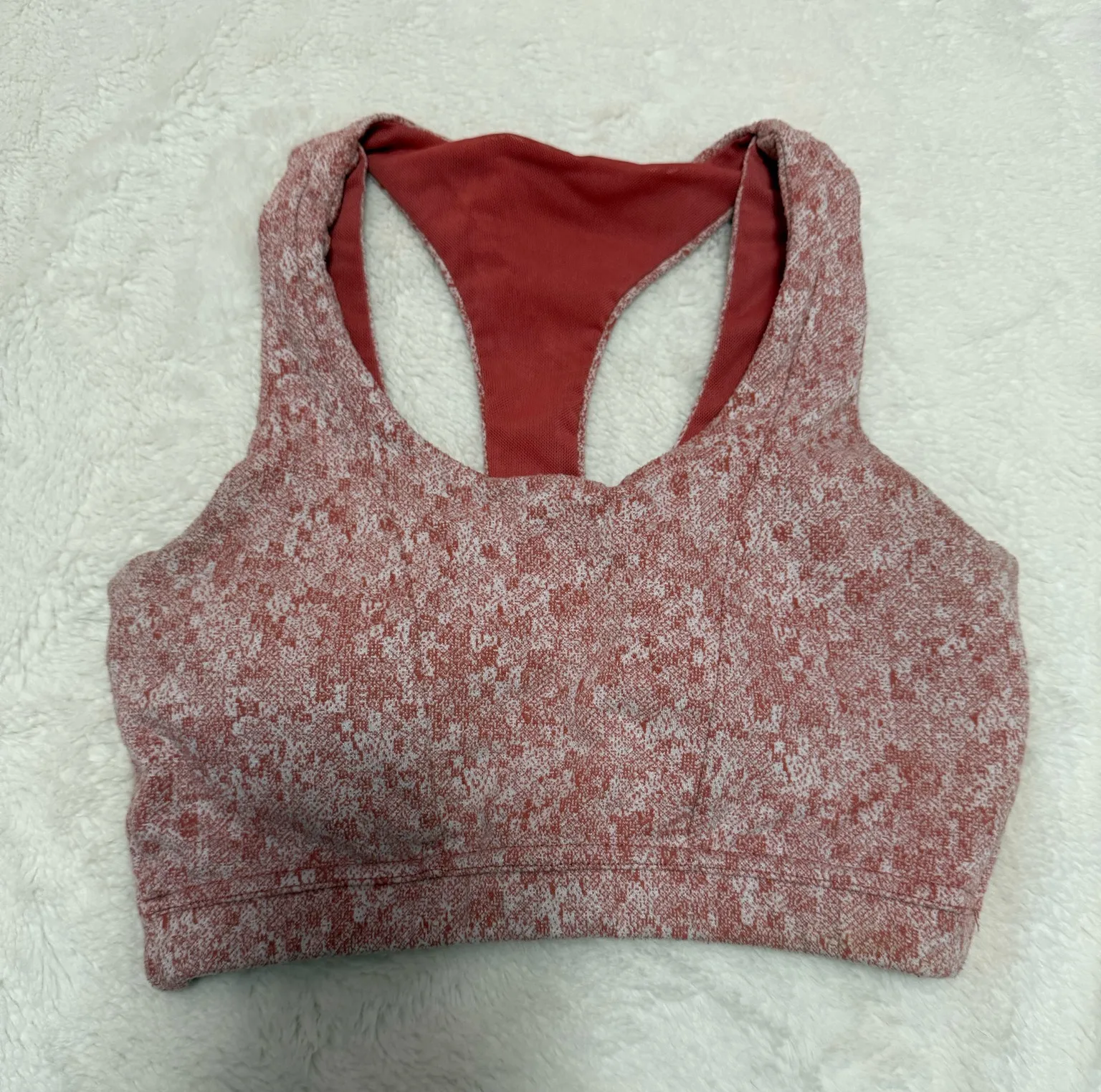 pink and white sports bra, barely worn good support