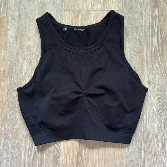M Gymshark womens black on black vision workout sports bra. Retailed $54 like new