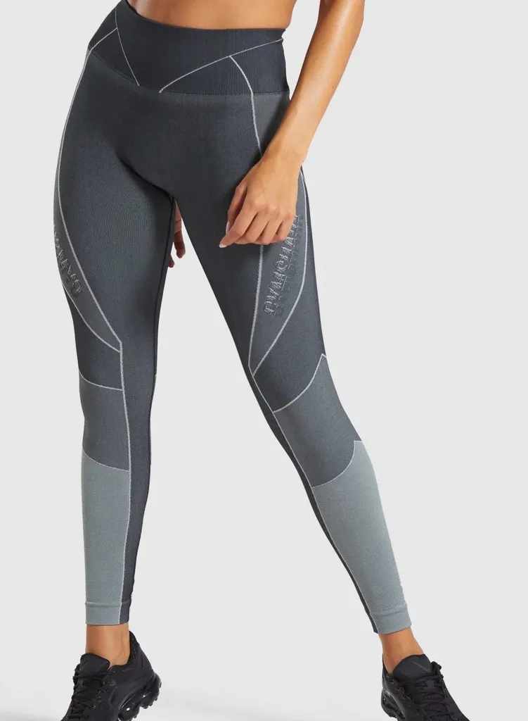 Size XS (no size tag- see measurements) Gymshark Turbo Seamless Leggings in black- designed for act... Show more