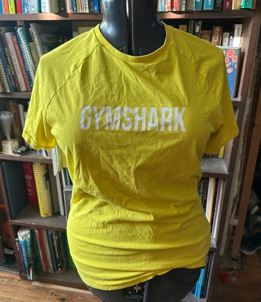 Gymnshark graphic, yellow, basic, scoop neck, longer length, Athleisure, workout t shirt . Pairs wel... Show more