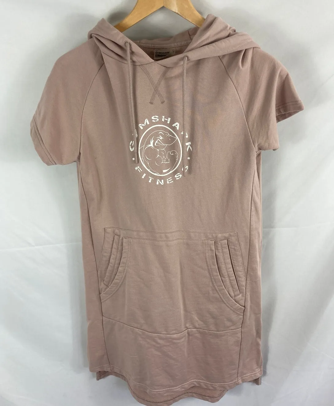 Gymshark Legacy Fitness Longline Hoodie - Pink short sleeve hoodie with drawstring relaxed fit has d... Show more