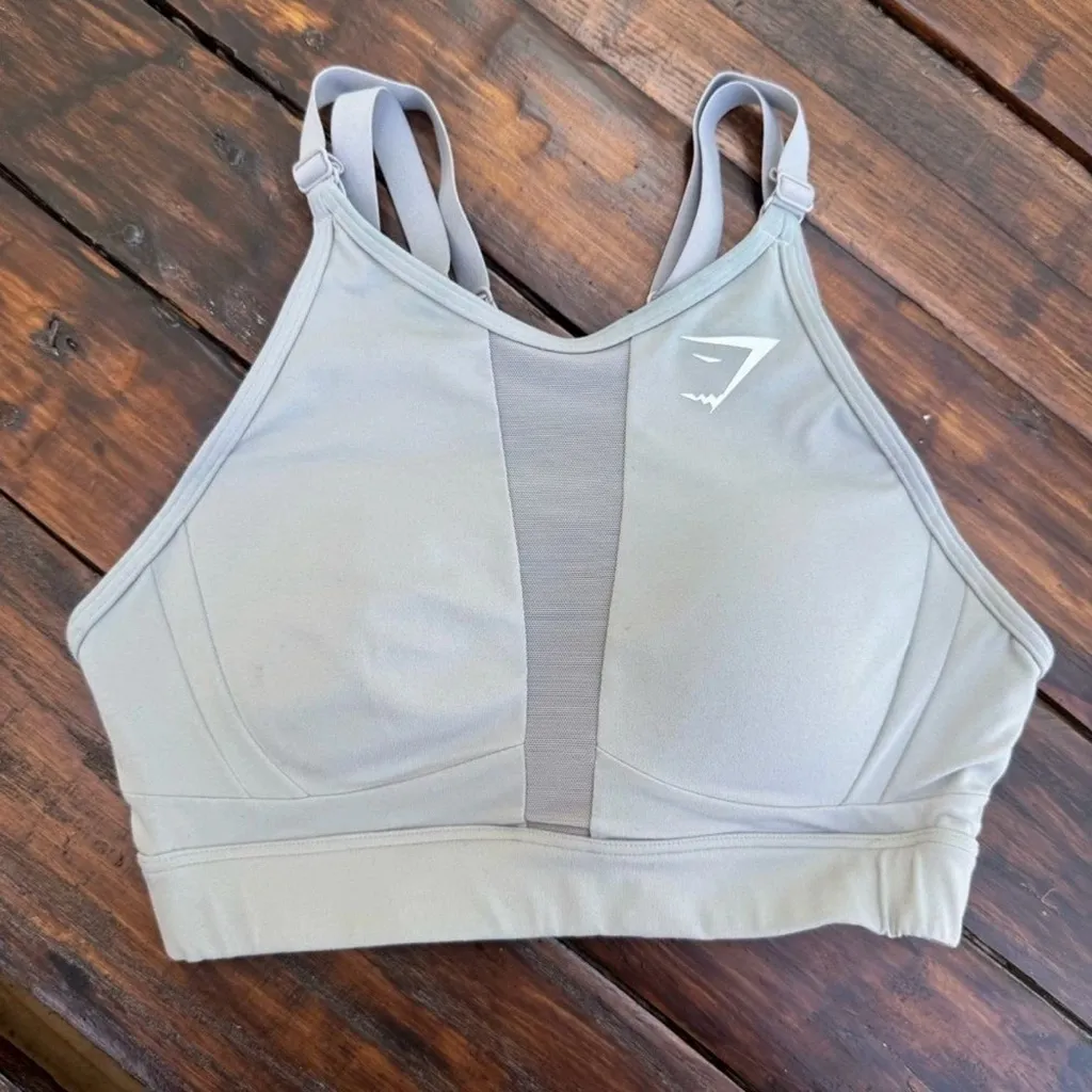 Gymshark high-impact sports bra featuring a supportive body-hugging fit with mesh neckline inserts a... Show more