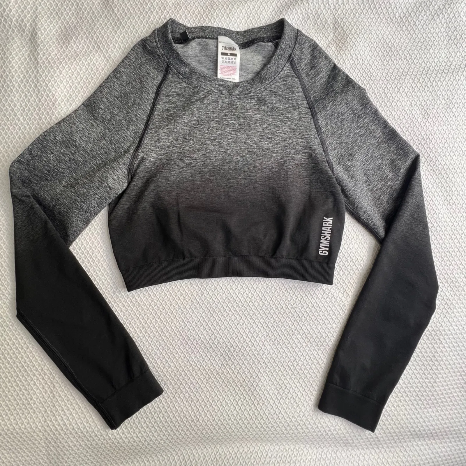 A Gymshark Ombre Seamless Long Sleeve Crop Top for women. This athletic top features a stylish ombre... Show more