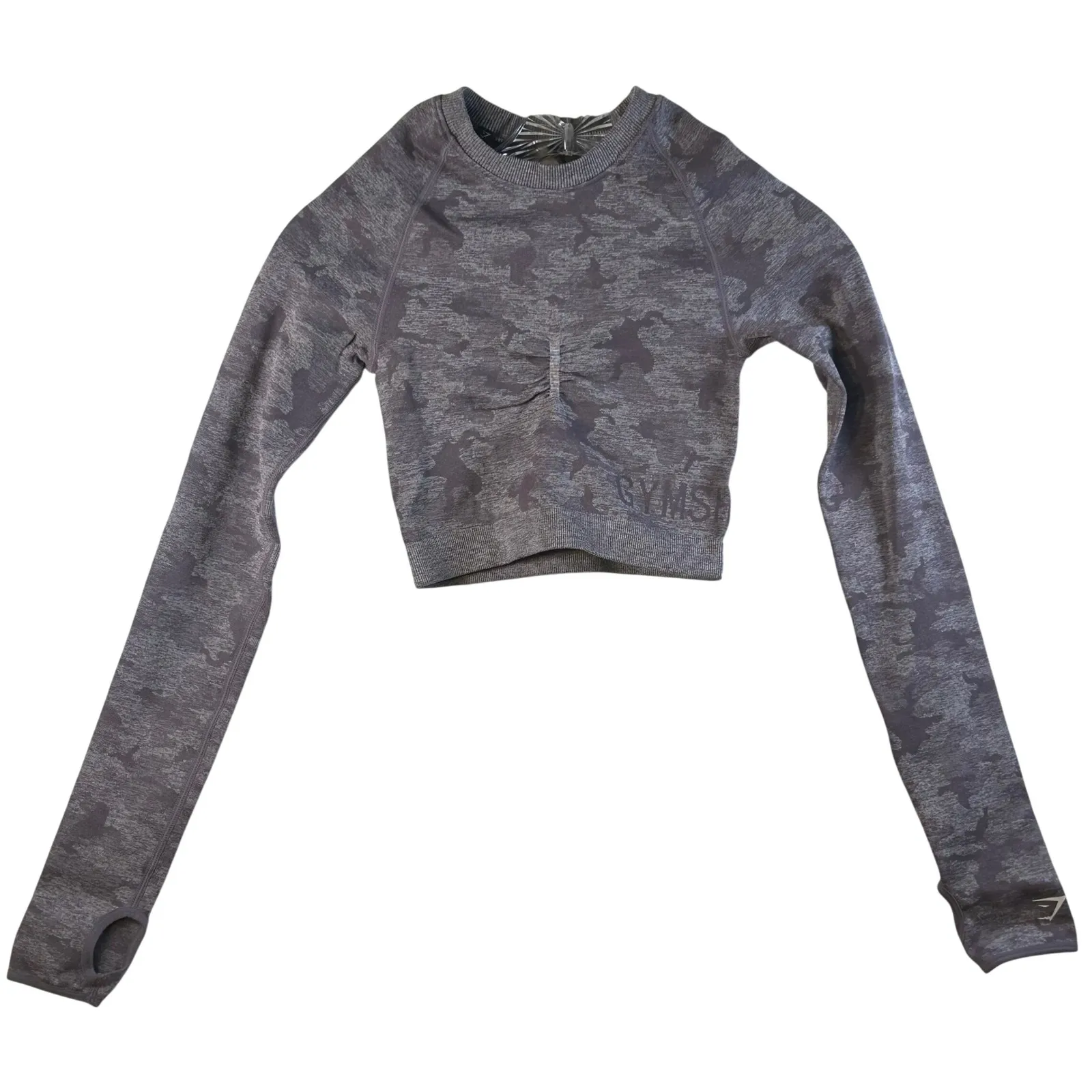 Gymshark activewear crop top in a camouflage print. Features long sleeves with thumbholes, a ruched... Show more