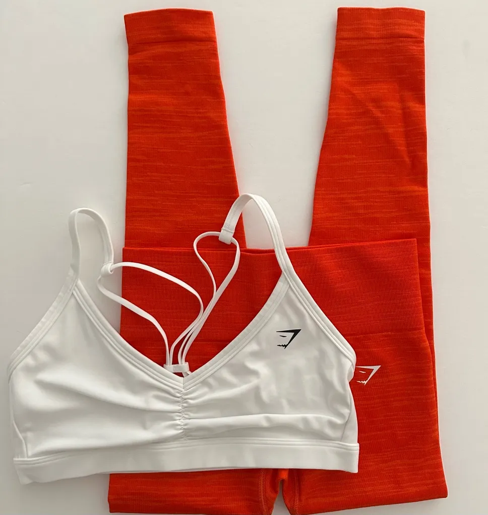 Adapt Marl Seamless Leggings Small New in packaging Pepper Red/Zesty Orange Ruched Strappy sports... Show more