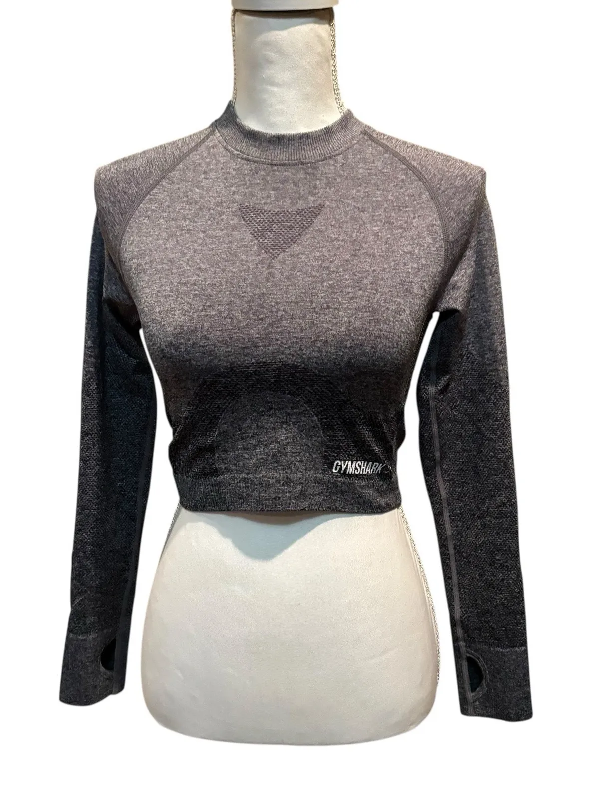 Gymshark Shirt Womens size Medium Gray Seamless Crop Top Neutral Workout Athleisure Measurements ar... Show more