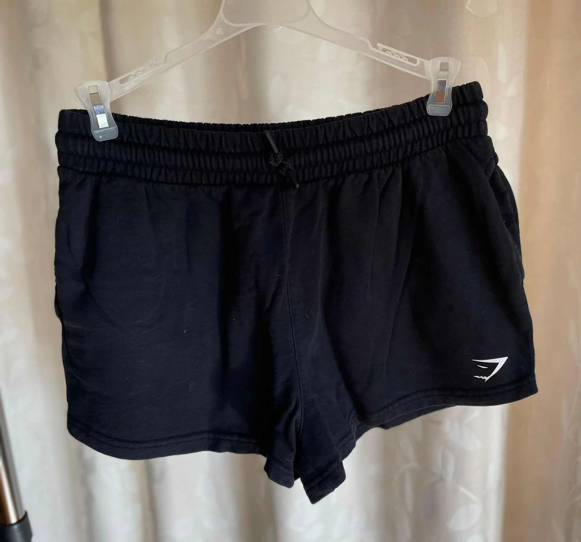 black sweatpant material shorts. has a drawstring as well!