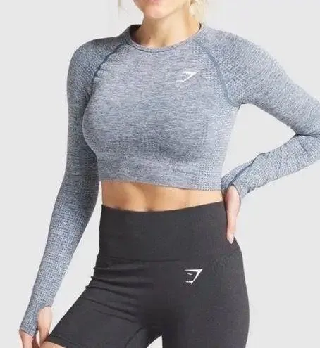 Gymshark Vital Seamless Crop long sleeve Blue marl Has thumbholes Fitted Measurements shown in pict... Show more
