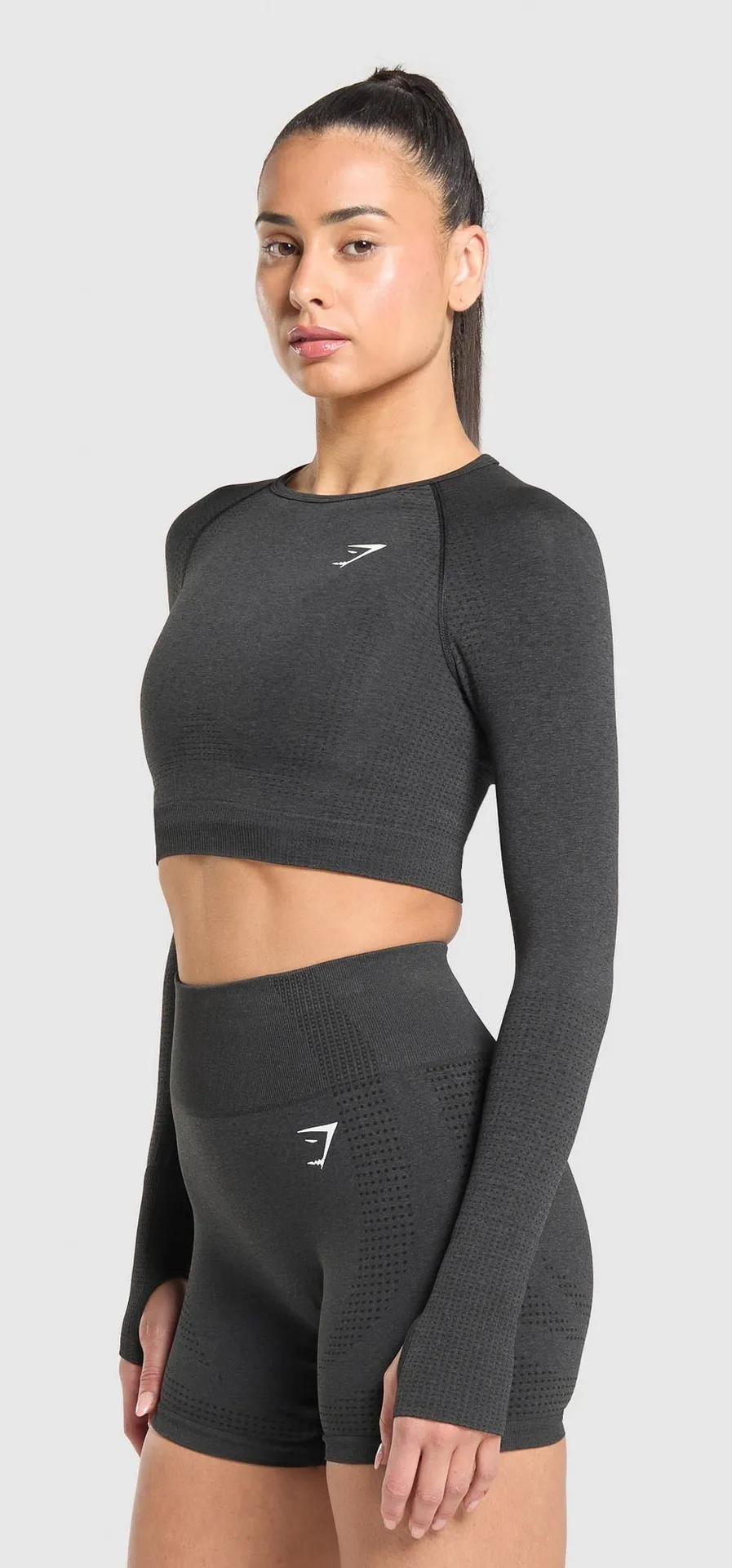 Like new Gymshark cropped long sleeve workout top. The sleeves have holes for your thumbs. The lengt... Show more