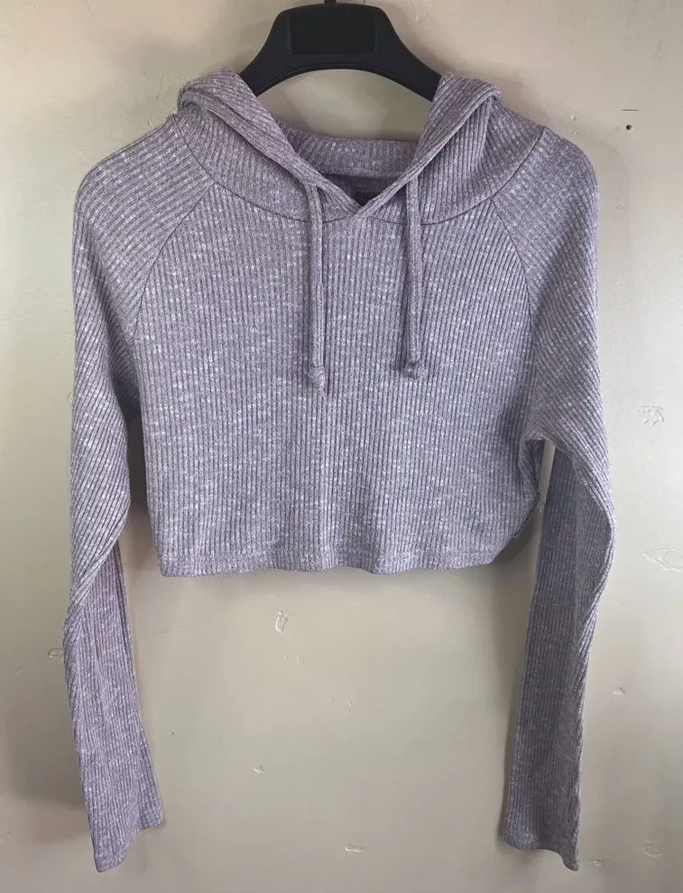 Gymshark Womens Hooded Cropped Ribbed Knit Sweater Size Medium Beige Streetwear Gently Used. No Sta... Show more