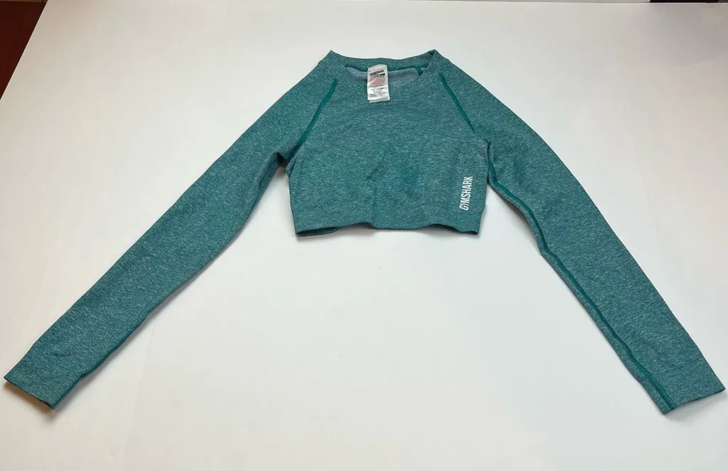 GymShark teal women’s size XS long sleeve cropped fitted top athletic workout Preowned in great cond... Show more