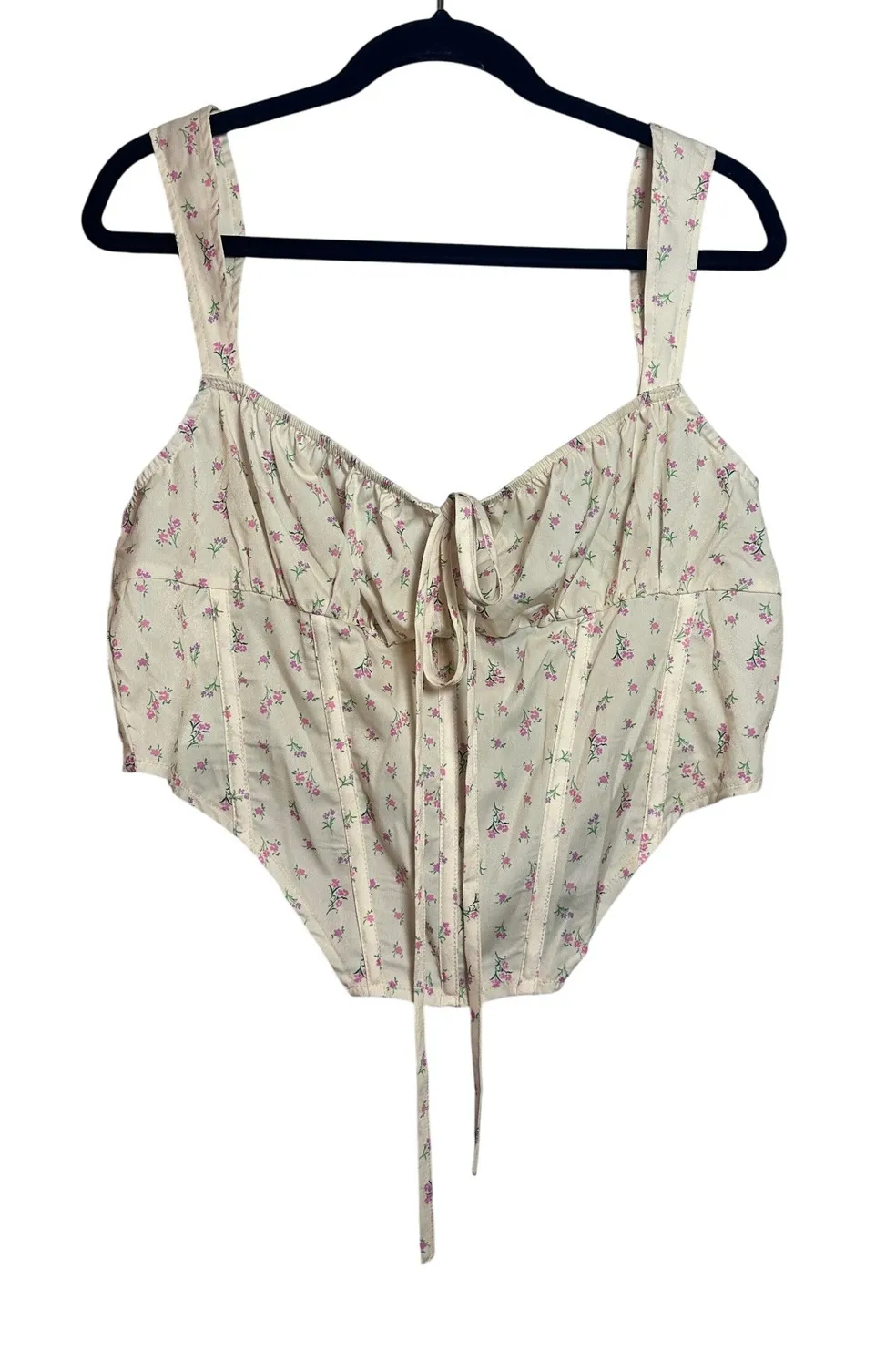 Pretty Little Things Plus yellow ditsy floral tie front corset top. This charming top features a sweetheart neckline with a functional tie front closure and adjustable spaghetti straps. The corset silhouette is designed to flatter, with boning details for structure and a zip closure at the back. Its all-over delicate floral print adds a touch of sweetness, perfect for a garden party, brunch with friends, or a romantic date night. NWT No stains or holes. Meausrements: Armpit to Armpit: 17 inches Length: 21 inches Style: Corset Top Type: Corset Material: Polyester Theme: Tea Accents: Strap, Zipper, Bow Department: Women Keywords: plus size, ditsy floral, tie front, corset top, sweetheart neckline, zip back, adjustable straps, boning, feminine, romantic, spring fashion, summer style, cottagecore