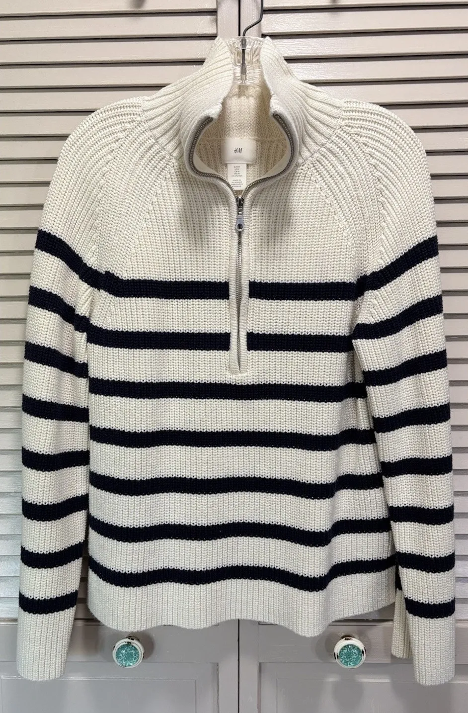 The H&M 1/4 Zip Striped Oversized Knit Cardigan in size M is a stylish and versatile piece for women... Show more