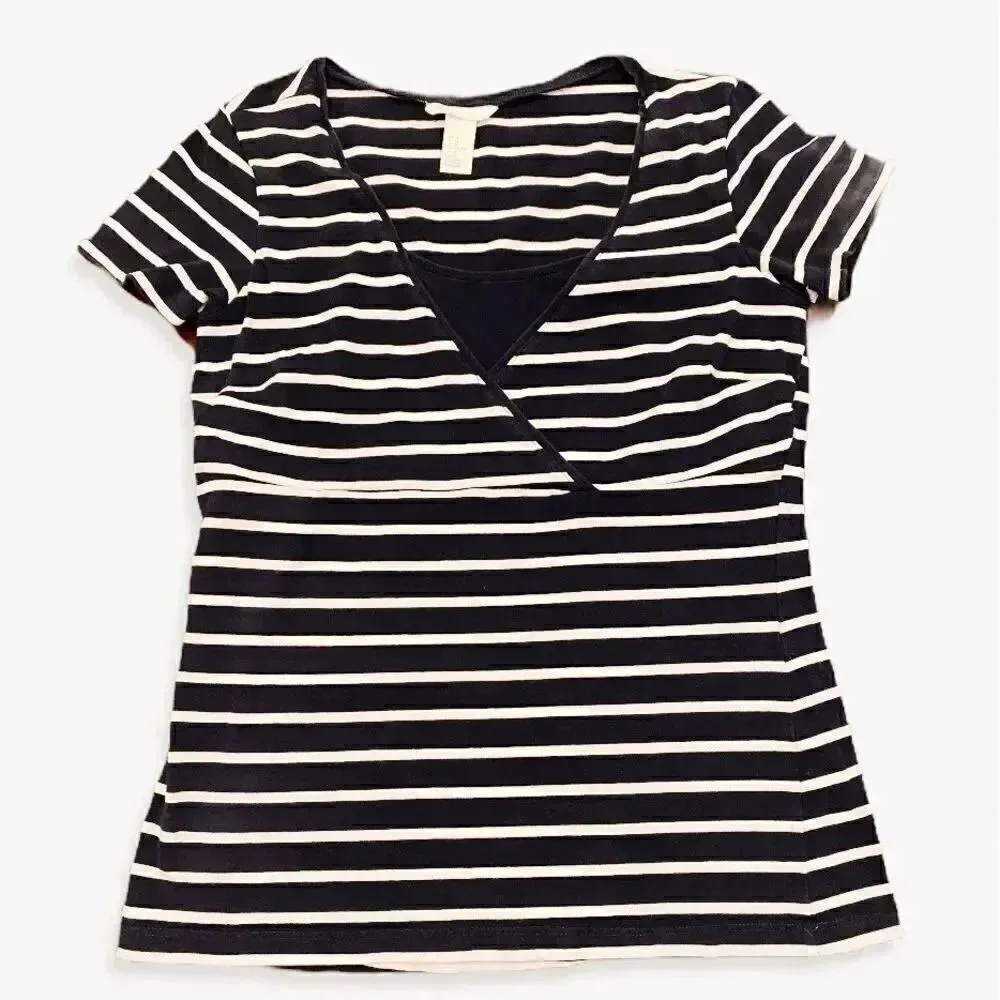 H&M Mama Navy and White Stripes Short Sleeves Women Top Size: M 95% cotton, 5% elastane Measu... Show more