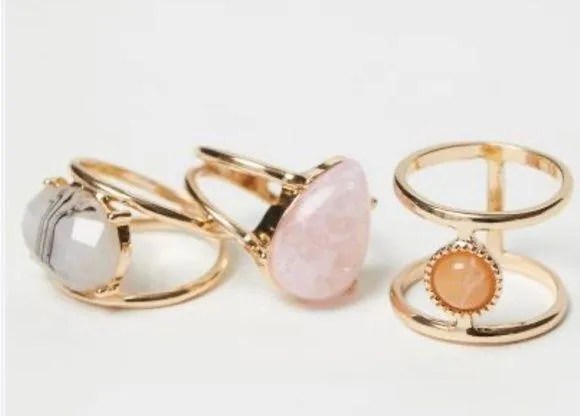 Metal rings in various designs with decorative stones