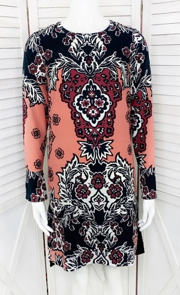 H&am All Over Print Long Sleeve Tunic Dress Size 2 Dark coral & black, All over scroll print, Lo... Show more