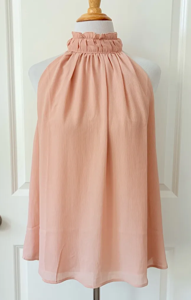 This elegant blush halter top is perfect for any occasion. Its soft fabric and stylish design make i... Show more
