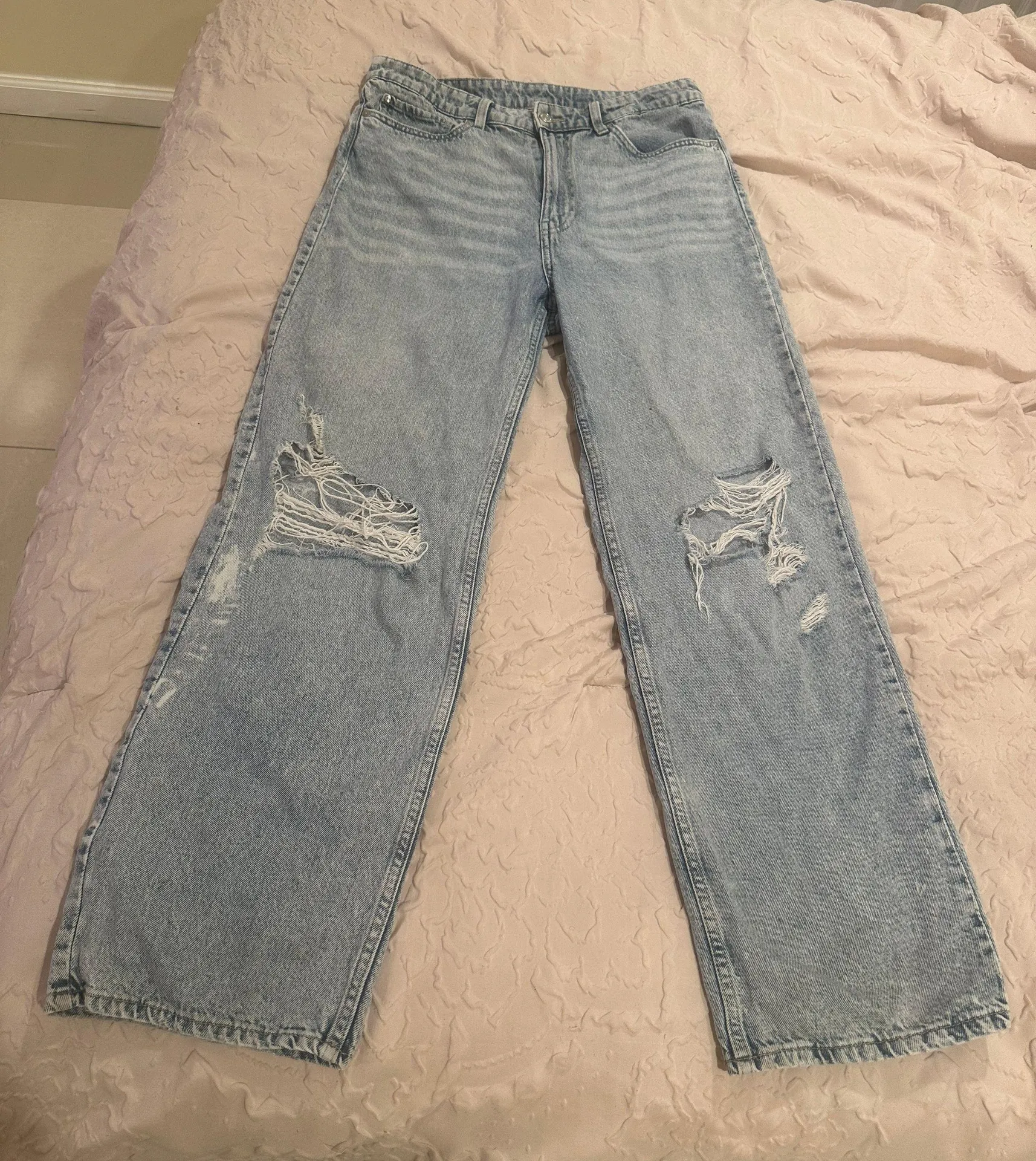 Super comfortable boyfriend jeans with rips in the knees. Only worn a couple times. Moveable materia... Show more