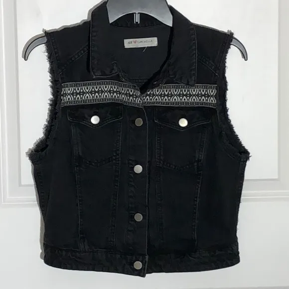 Excellent preowned condition. Distressed festival denim vest with embroidery on front and back.... Show more