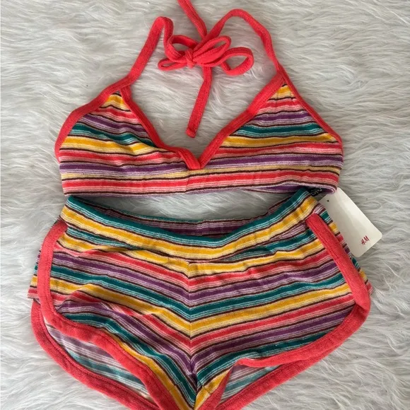 NWT H&M colorful striped bikini top w/matching shorts Vibrant Stripes Small