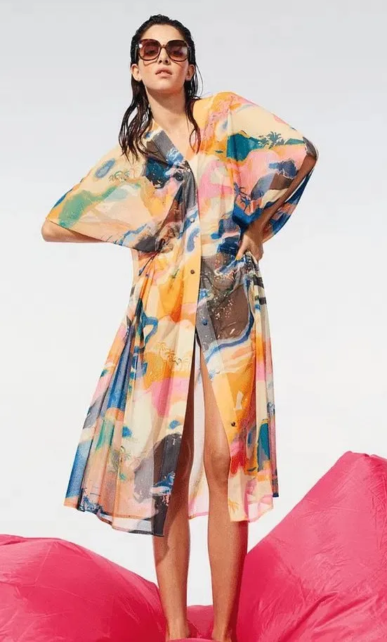 H&M Colorful Swim Cover-Up multi-color kaftan vibrant abstract funky flashy xxl versatile coastal... Show more