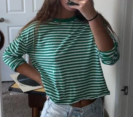 Super soft. Only worn once. I cut the sleeves so they’re shorter and I roll them up.
