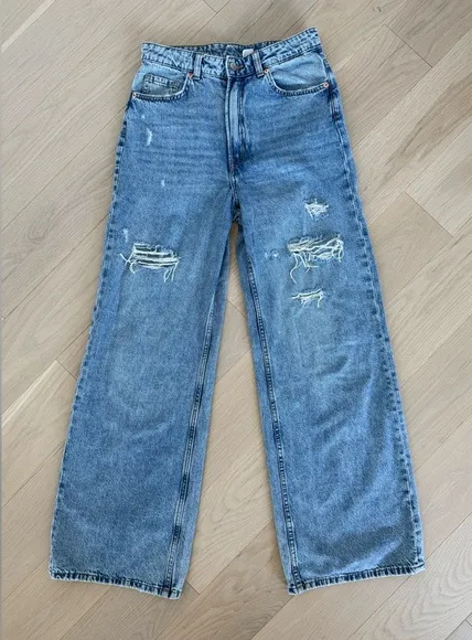 Bring bold ’90s energy to your wardrobe with these H&M Divided wide-leg flare jeans. Designed with d... Show more