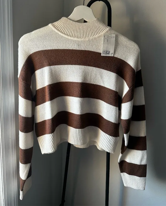 H&M Divided pullover sweater in women’s XS with wide brown and cream horizontal stripes. Cropped, re... Show more