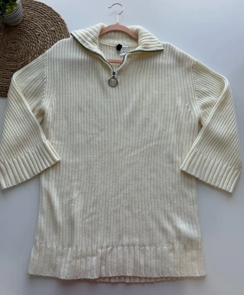 This H&M Divided sweater, crafted from 100% acrylic, offers a sleek and professional look. Its ribbe... Show more