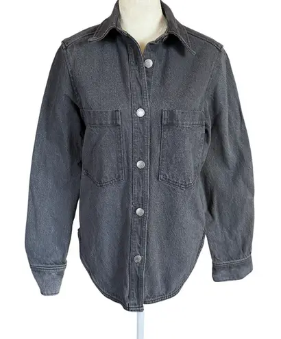 Women's H&M faded black long sleeve collared button down jean jacket, size XS. This has button slee... Show more