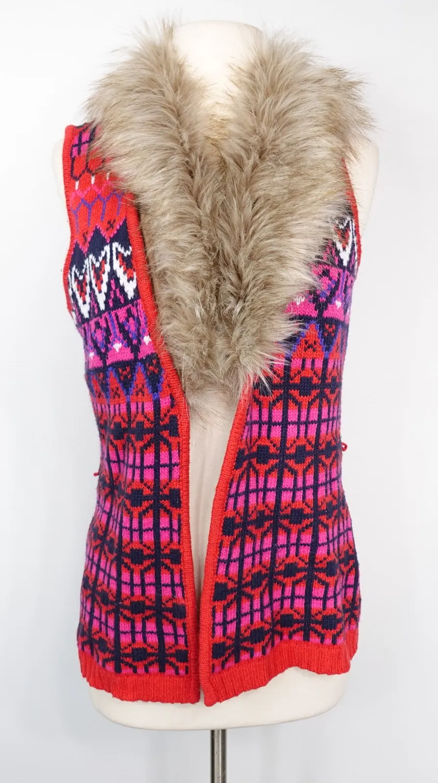 H&M Faux Fur Heart Nordic Fair Isle Sweater Vest Holiday Festive Fall Winter Good condition. Pilling... Show more