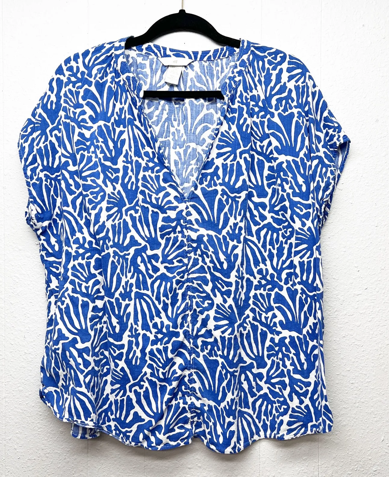H&M women's floral top in blue & white. V-neck. Short sleeves. Lightweight & breathable. In good use... Show more