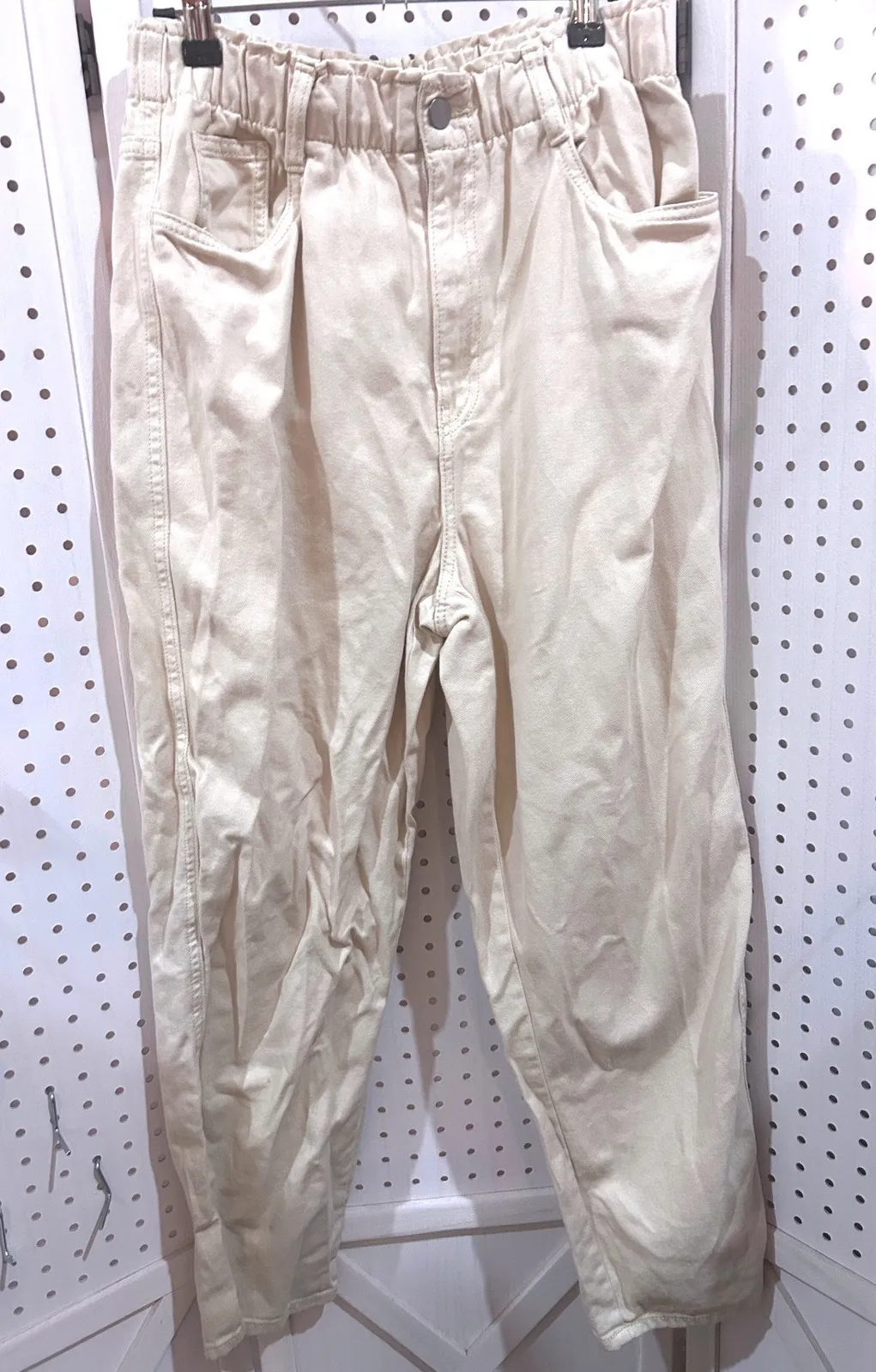 Super cute and like new condition. More like barrel leg style. Cream beige high-waisted pants b... Show more