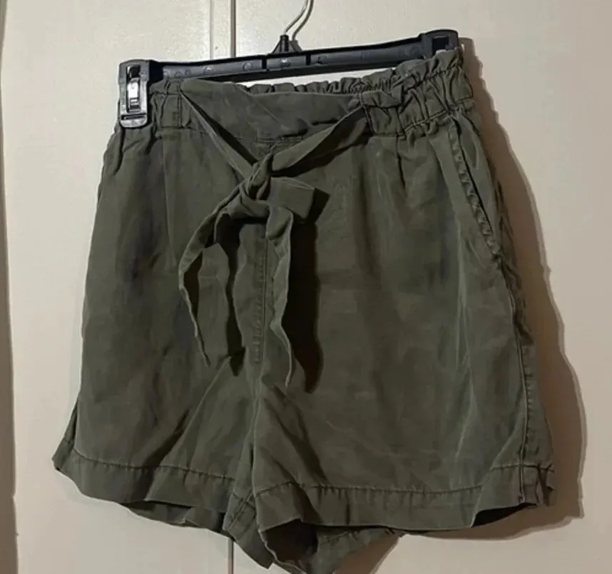 H&M High waist paper bag shorts Army green Size 2 us Or ERU 34 “High waist shortys” style 🌟 Bun... Show more