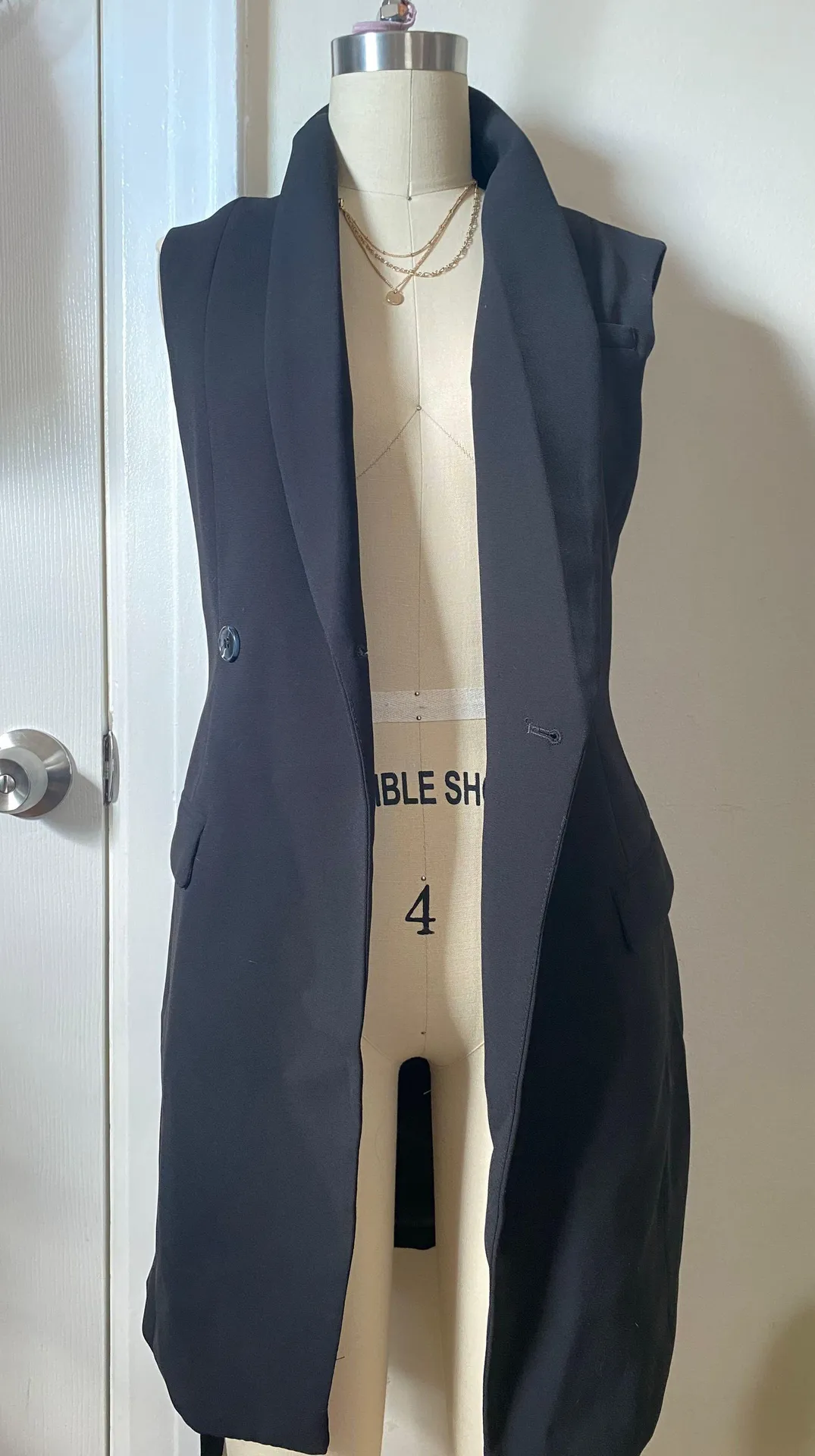Thick blazer material Sleeveless Can be worn open it closes up