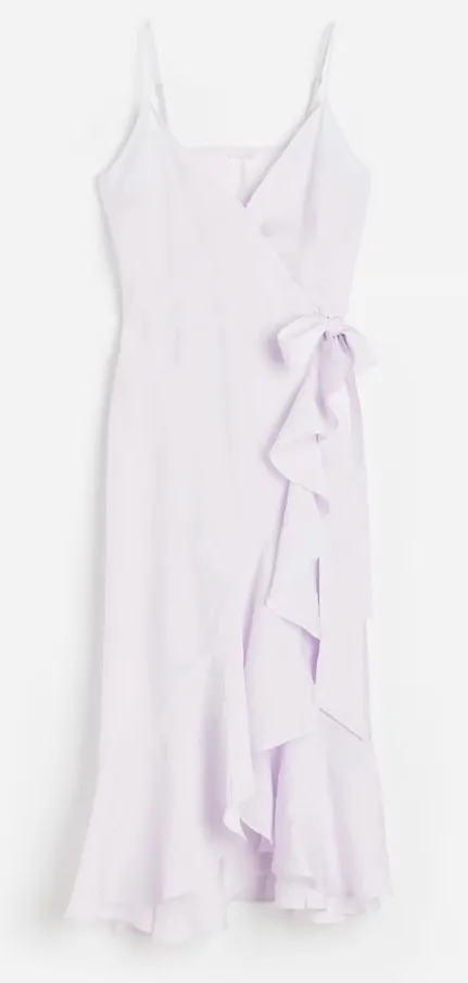 Calf-length dress in woven fabric with a wrapover front. Adjustable, extra-narrow shoulder straps, l... Show more