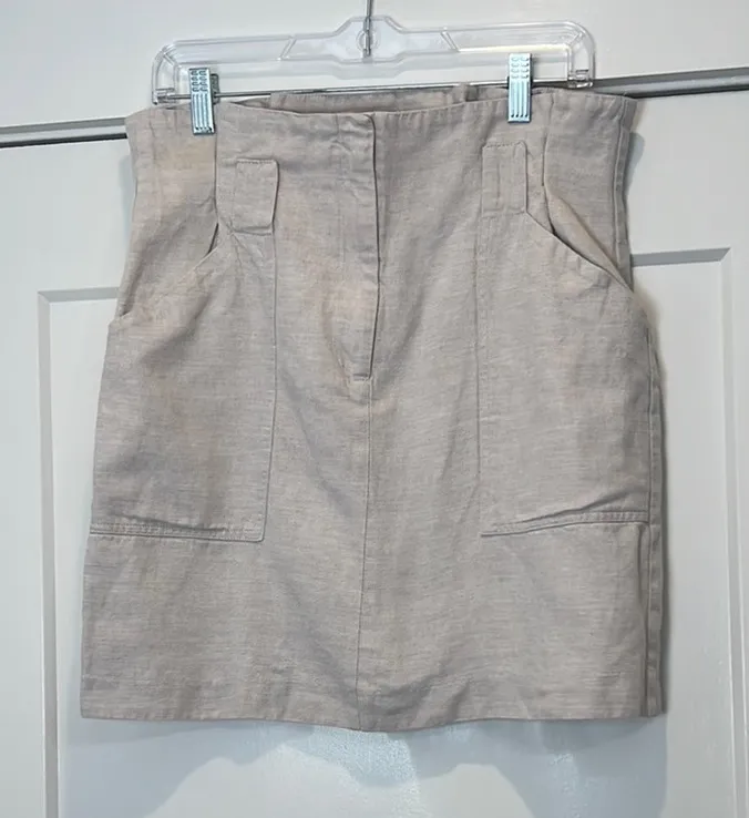 Elegant cream/light tan high-waisted skirt by H&M. Linen blend and a size 10. There is a very slight... Show more