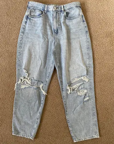 size 10 mom jeans with distressing high waisted seriously the best jeans ever, just too short on me... Show more