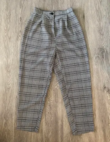 High waisted. Pleated black and white plaid. Waist can be stretched. Lightweight. Tapered at bottom.... Show more