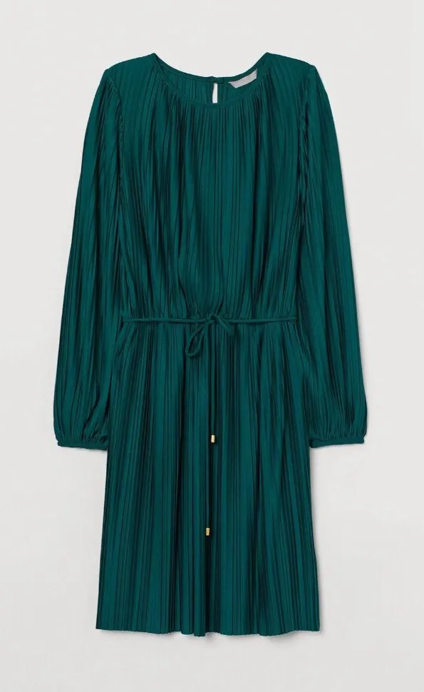 The H&M Pleated Emerald Green String Tie Dress in size M is a stylish and festive option for holiday... Show more