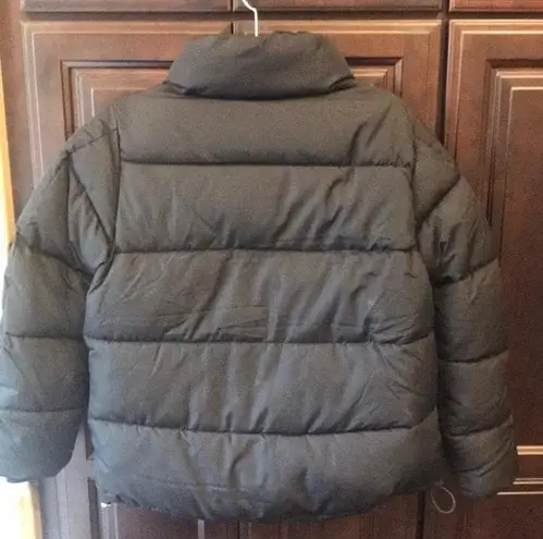 Black Puffer Jacket side snap pockets toggle waist adjustment both sides zipper front elastic band s... Show more