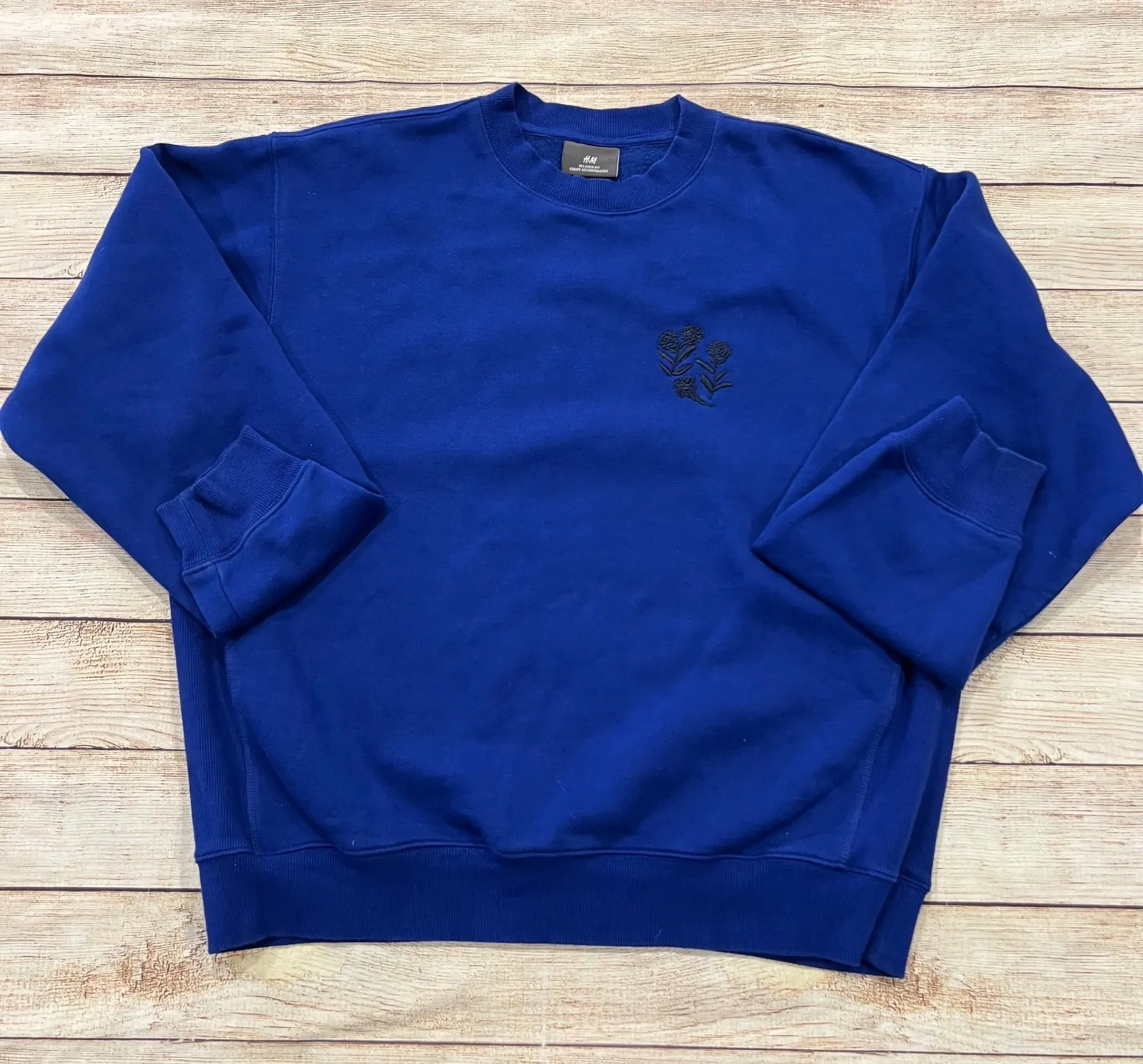 A vibrant royal blue H&M crewneck sweatshirt offering a relaxed fit. This pullover features a tastef... Show more