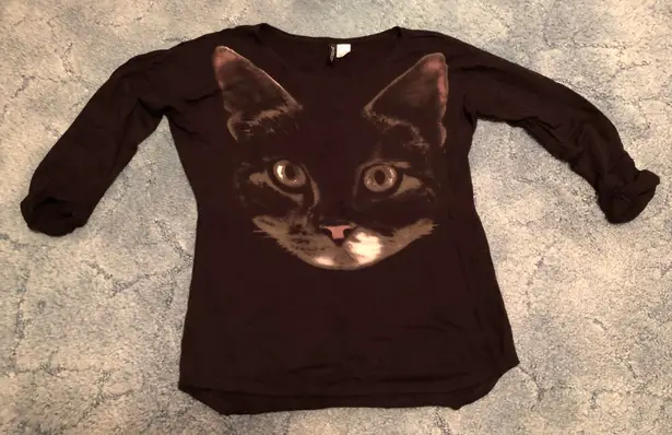 Top with cuffed 3/4-length sleeves. Sweatshirt-like feel to the fabric.